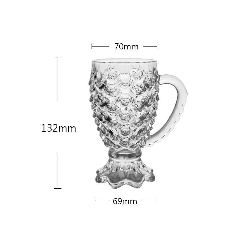 Pineapple Glass Mug with Fishtail Base - Unique & Fun Drinkware - Set of 6