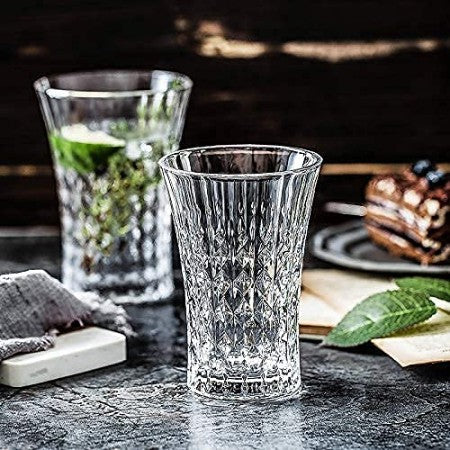 Crafted from high-quality crystal-clear glass, these tumblers provide exceptional clarity and durability for everyday use or special occasions. The flared design offers a comfortable grip, while the unique pattern enhances the aesthetic appeal of your table setting.