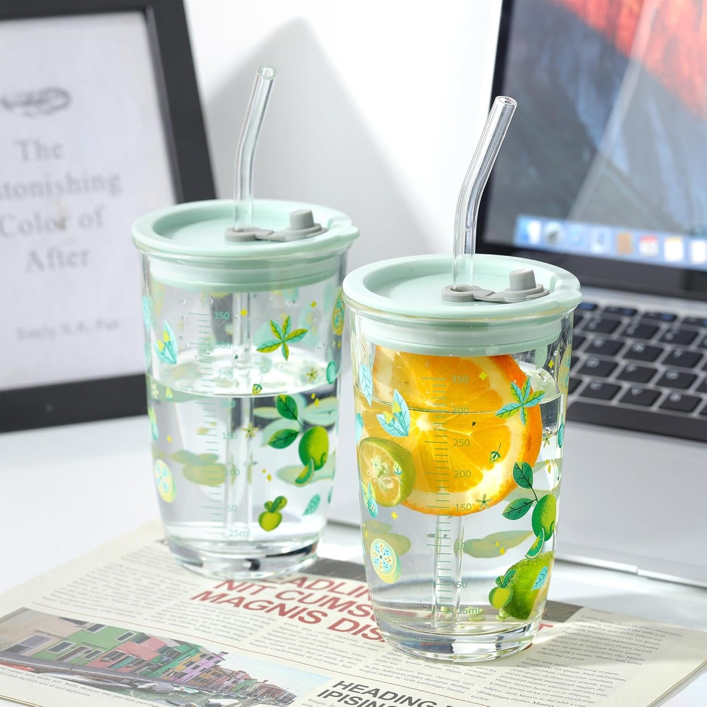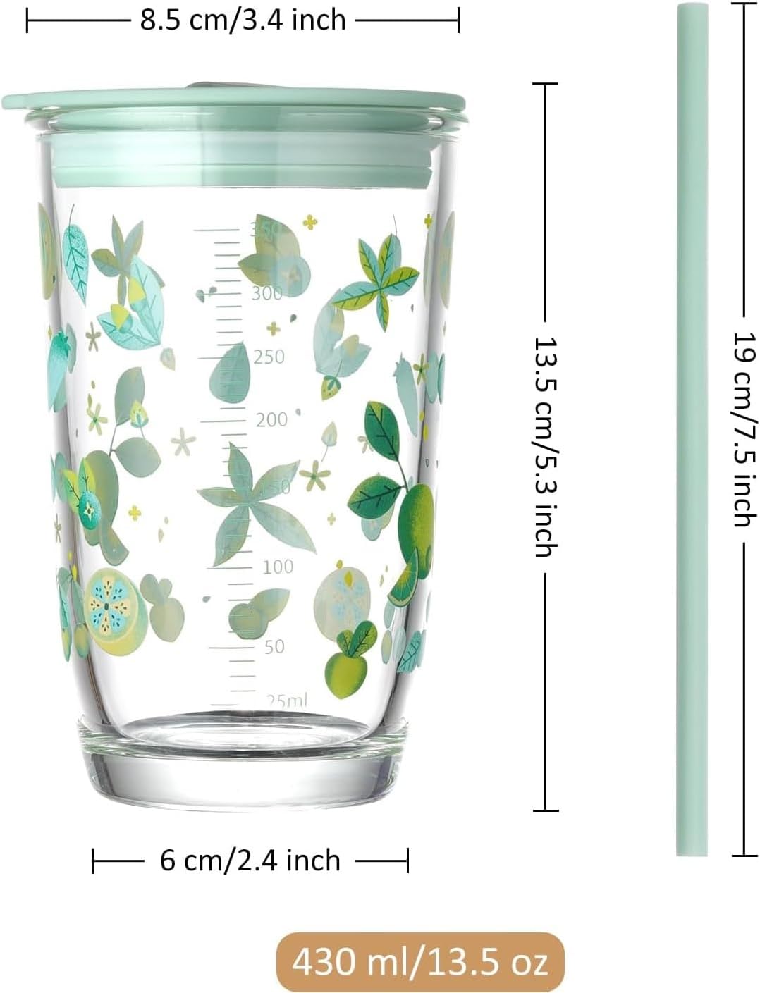 Enjoy your favorite beverages in style with this Printed Glass Tumbler with Lid and Straw, featuring an elegant lemon and floral pattern. Crafted from durable glass, this cup is perfect for iced coffee, smoothies, tea, water, juice, and soda. The included lid and straw ensure spill-free sipping, making it ideal for on-the-go hydration. Its vibrant design adds a refreshing touch to your drinkware collection, making it a perfect gift for friends, family, or yourself. Upgrade your everyday beverage routine with this charming and practical drinking jar!