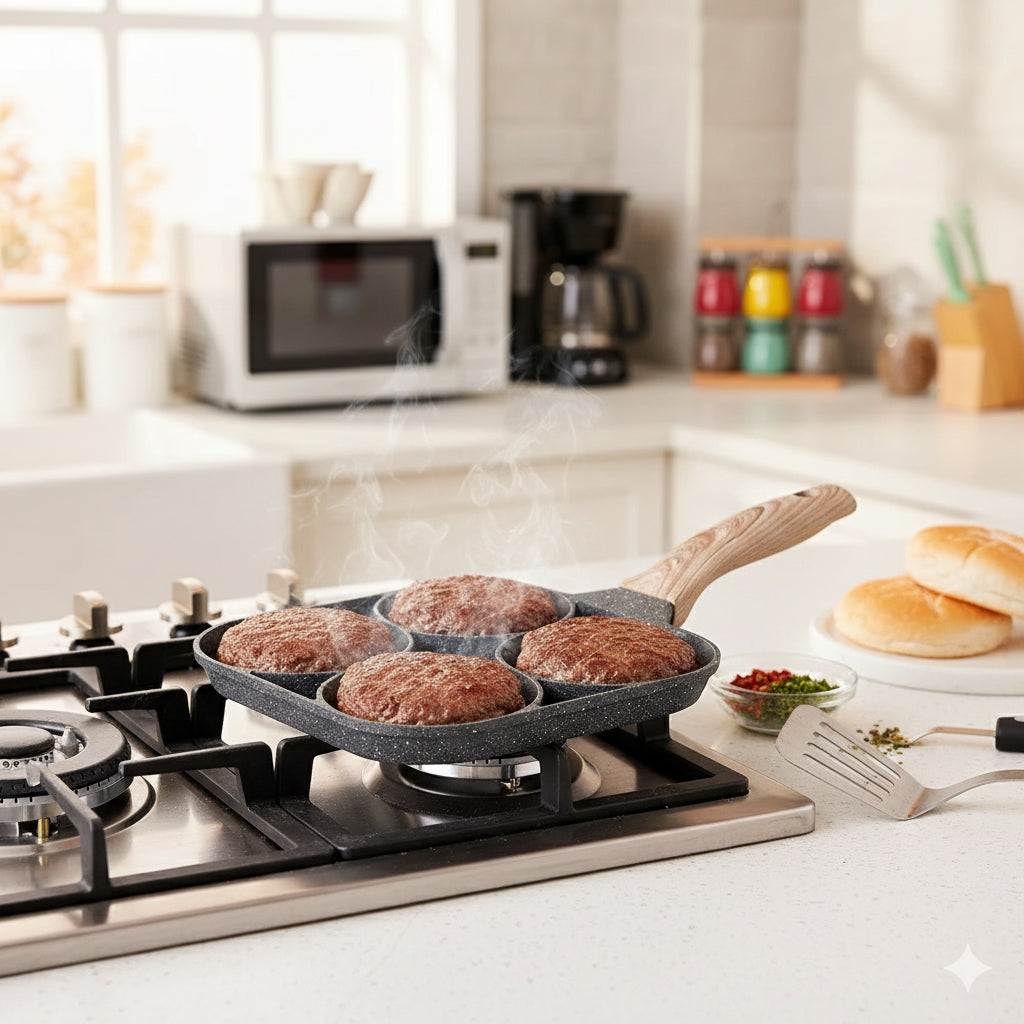 4 Section Non-Stick Omelet Pan | Induction & Gas Compatible Breakfast Pan