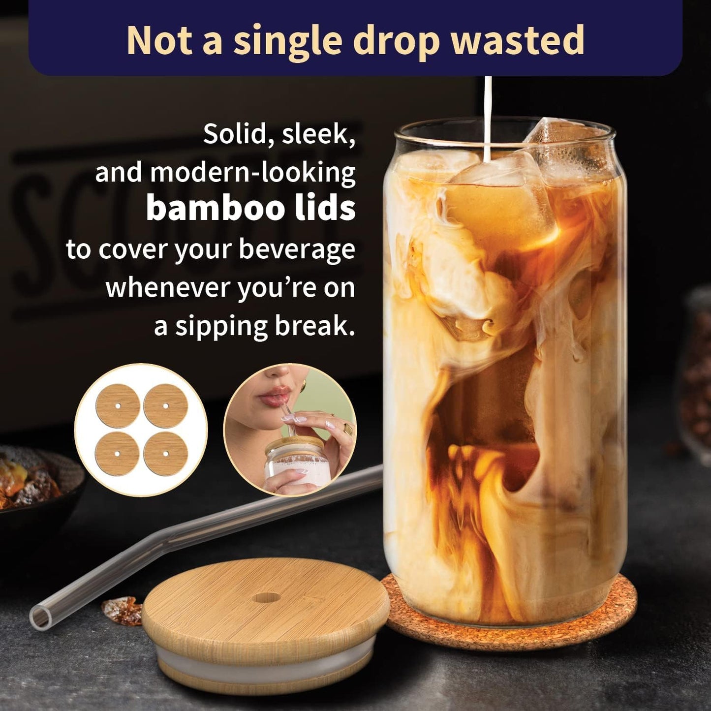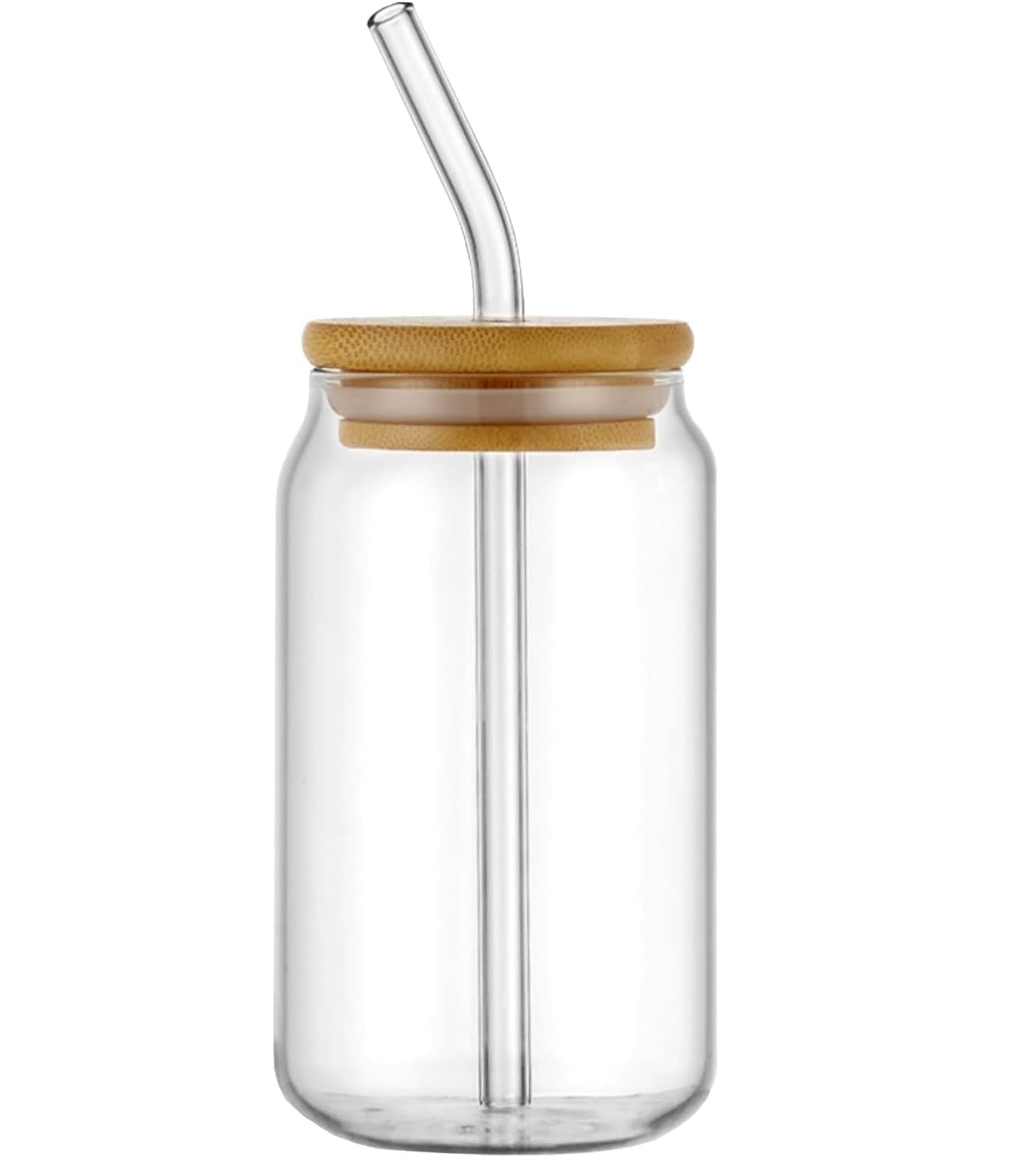 Can Shape Glass Mug with Bamboo Lid & Straw