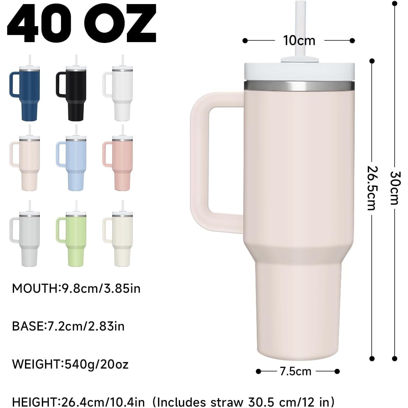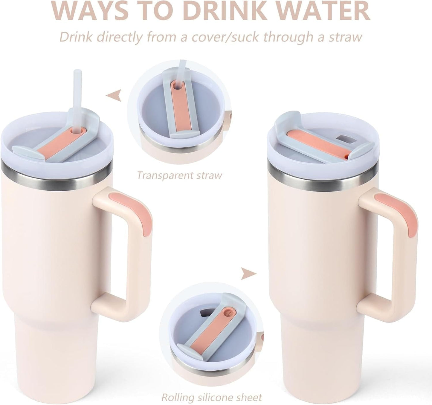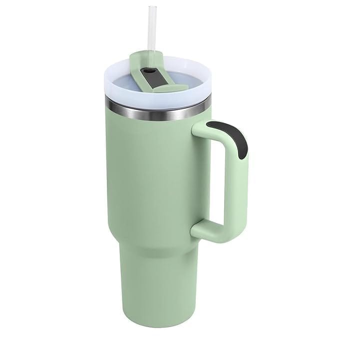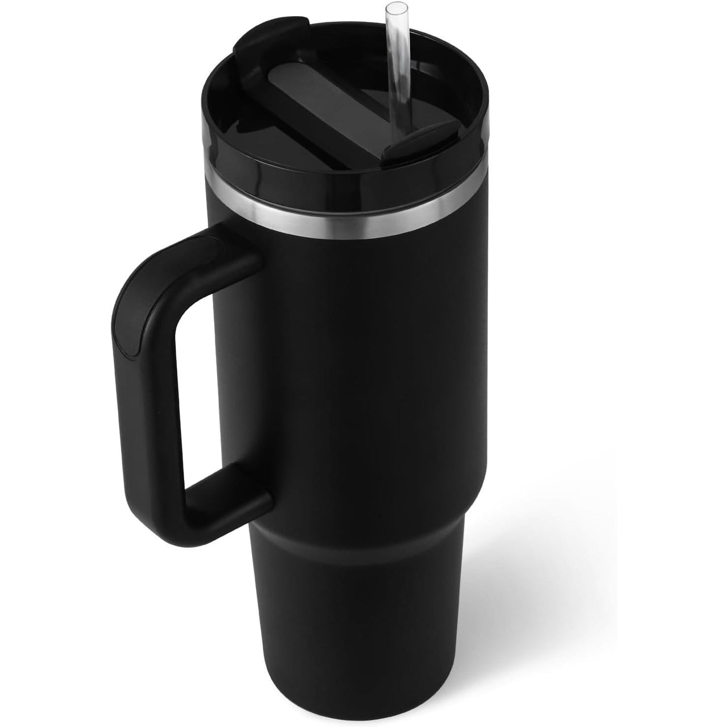 Stainless Steel Hot/Cold Tumbler with Handle & Straw | Double-Wall Insulated Sipper
