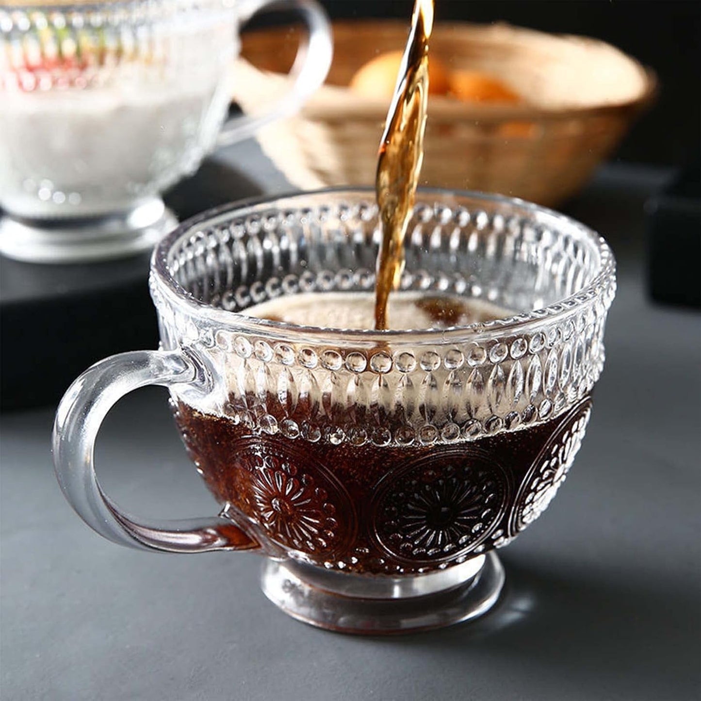 Indulge in timeless elegance with our Vintage Textured Glass Cup, designed to add a sophisticated touch to your drinkware collection. With a generous 400ml capacity, this large mug is perfect for enjoying a variety of beverages, from coffee, tea, and lattes to hot soups and refreshing drinks.